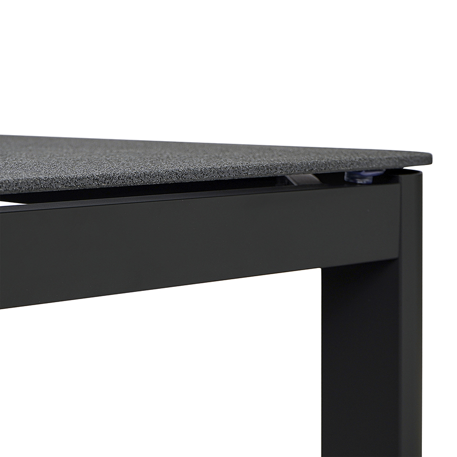 Материал: алюминий, закаленное кварцевое стекло. Размеры: 80х80х75 см. Расстояние между ножками: 76 см. Цвет: темно-серый.